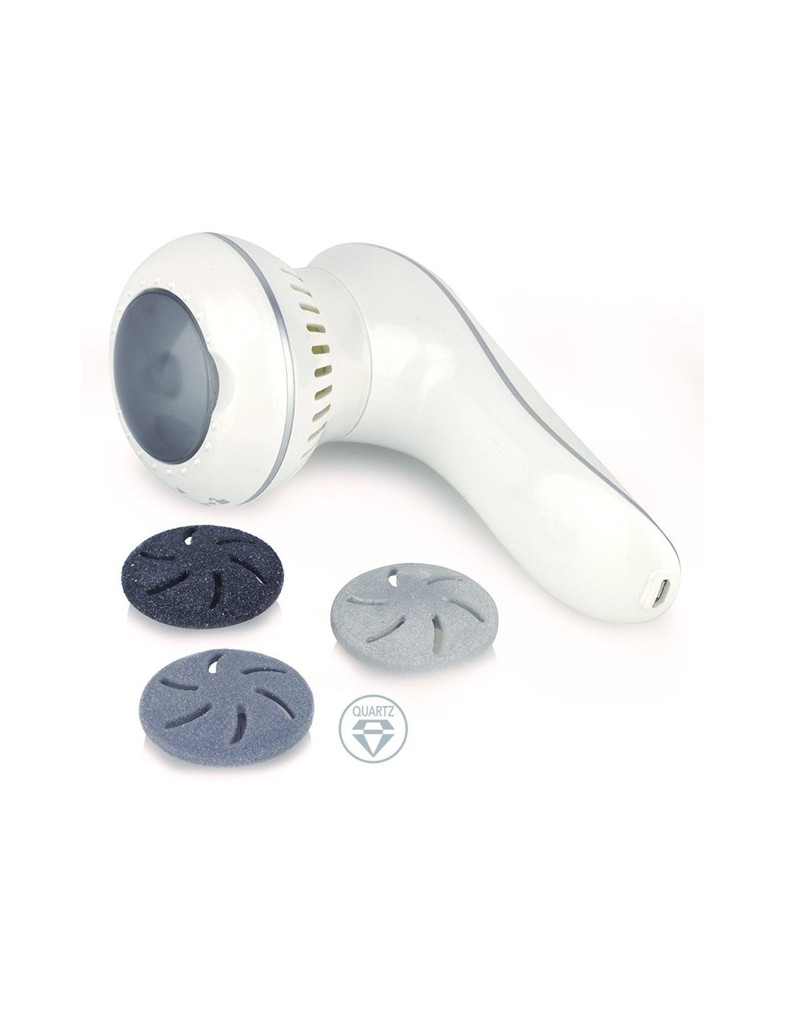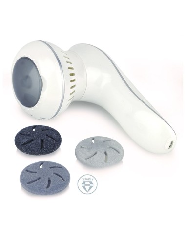 El diseño ergonómico de su mango y el uso sin cable permiten alcanzar todas las áreas del pie con facilidad: planta, talones y laterales. Sus tres cabezales, de distinto grano, se adaptan a diferentes tipos de durezas y callosidades para limarlas suavemente.